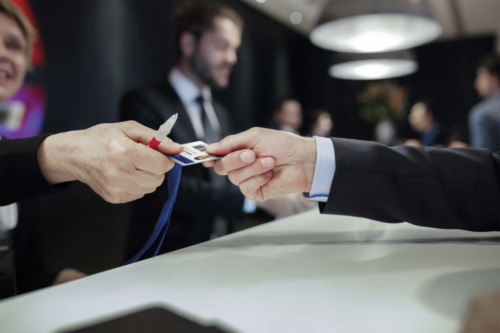 Ticketing/Event/Besuchermanagement: Druck individueller Besucherausweise, Tickets und Namensschilder mit Fotos, Logos, Farbcodierungen und QR-Codes zur einfachen Identifizierung – inklusive Werbebotschaften und Agendapunkten.